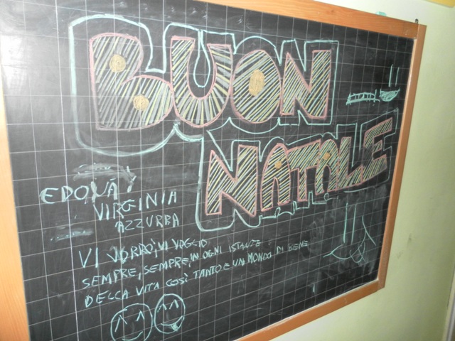 Le stelle le ritaglio io! Passami la colla! Guarda che belli i suoi origami! Mi insegni? E’ una gioiosa confusione quella che in un attimo esce da una scatolone pieno zeppo di carta e colori. E dalla stanza accanto iniziano già a farsi strada le melodie di chi si sta approcciando per la prima volta alla chitarra e alla batteria, approfittando della temporanea presenza di chi è in grado di dare qualche dritta: l’indice su questa corda, così ecco! Senti il ritmo, battilo col piede alla grancassa e poi con le bacchette fai così! Le istruzioni cercano di superare il baccano indistinto che gradualmente va trasformandosi in un ritmo orecchiabile che fa
