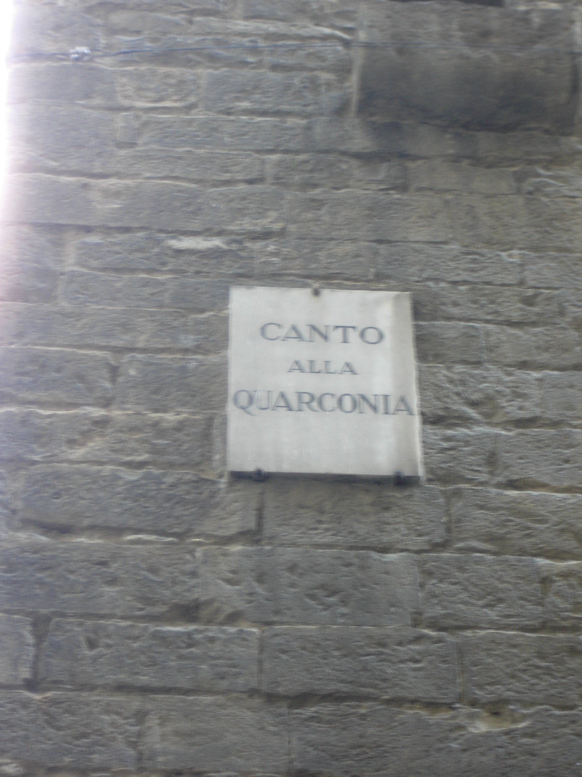 Spostandoci fra il Duomo e piazza della Signoria, troviamo un’altra via dal nome particolare: via del Canto alla Quarconia. «Il pubblico di Borgognissanti, per quanto fosse un teatro frequentato generalmente dal popolo, era meno rumoroso, meno chiassoso e meno screanzato di quello chiamato Leopoldo o della Quarconia, dove si spendevano due crazie e dalle otto vi si faceva anche il tocco dopo la mezzanotte». Così si legge a riguardo sul testo Firenze Vecchia di Giuseppe Conti. La Quarconia era infatti «la Pergola dei beceri e delle ciane» e dopo gli spettacoli – a cui si assisteva portandosi da casa «i tegami dello stufato dell’agnello, i fiaschi di vino e il pane» – gli spettatori uscivano per tornare a casa, ripetendo strada facendo gli avvenimenti della serata e discutendo delle vicende a cui avevano appena assistito.