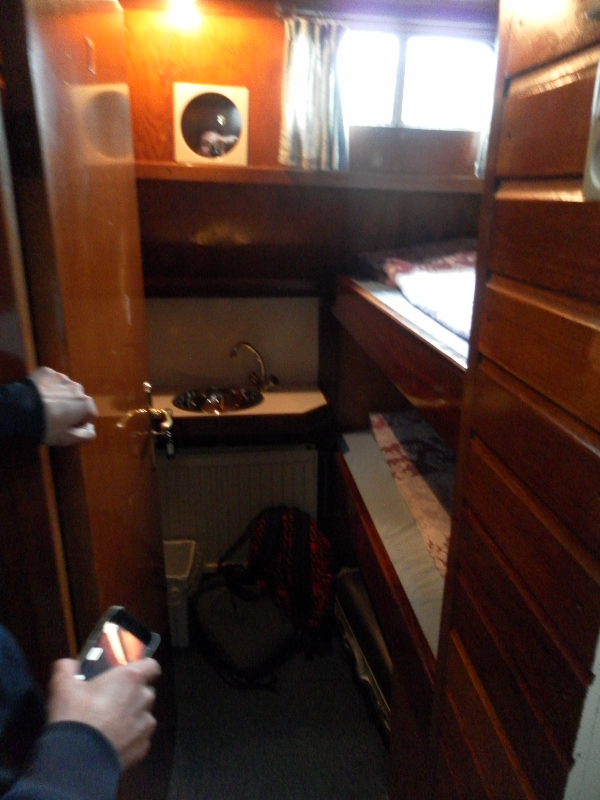 Le cuccette sono così corte che io tocco testa e piedi, mentre Alberto è costretto a dormire rannicchiato. Lo spazio restante è sufficiente solo per una persona in piedi, per cui mentre uno si cambia, l’altro deve aspettare nel corridoio. La finestra è grande come un piatto da minestra. Mi manca l’aria e passo la notte in bianco.