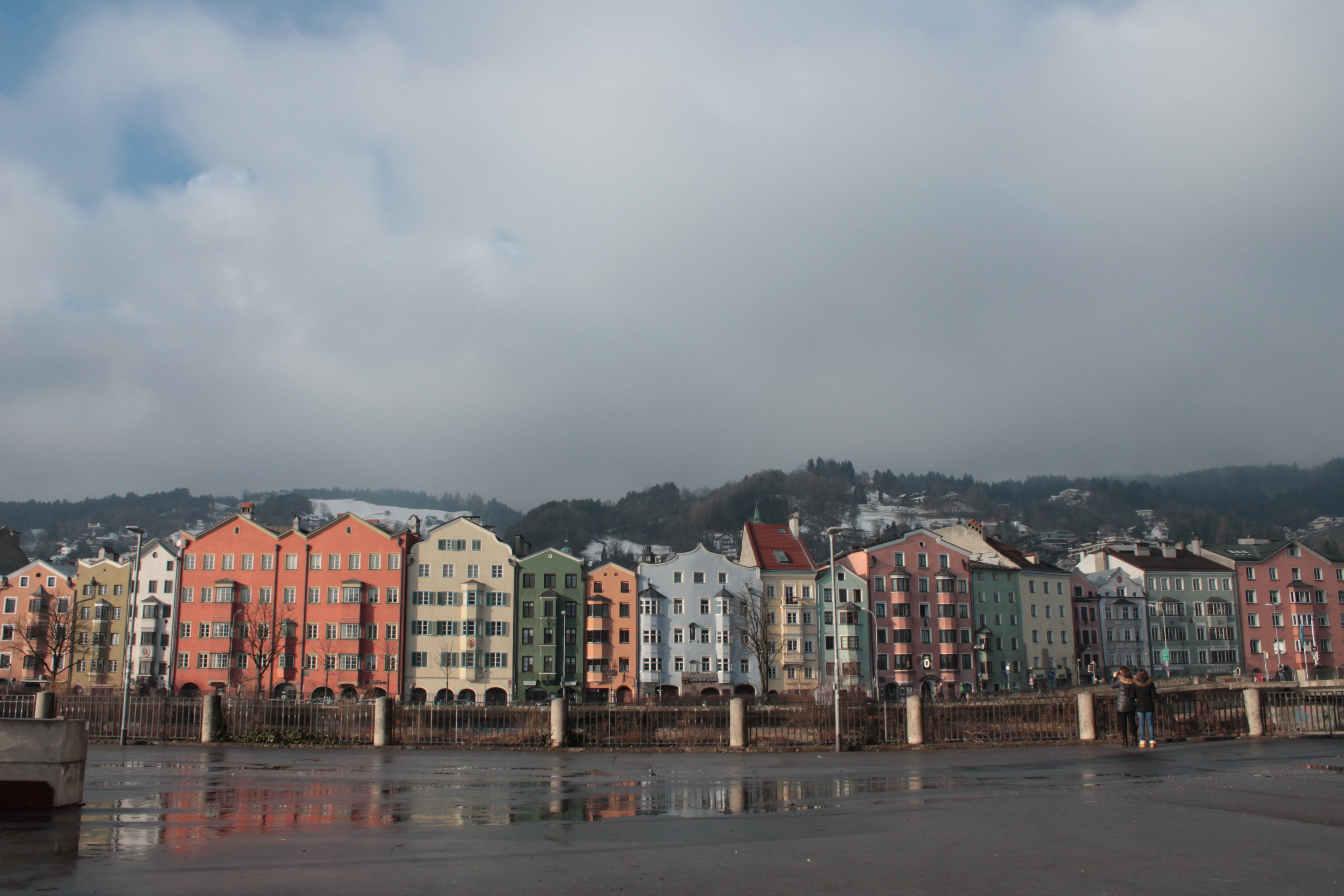 SFIGA N.3: INNSBRUCK (La città delle piccole e grandi sfighe). La mattina prendiamo un treno per il capoluogo tirolese, ancora indecisi su cosa fare. Abbiamo prenotato due notti a Salisburgo e dobbiamo trovare il modo di arrivarci. Prima di tutto proviamo a lasciare i trolley nelle cassette di sicurezza della stazione ma sono tutte, proprio tutte, occupate. Quindi giriamo la città con i bagagli e questo non ce la fa certo godere. Intanto, visto che il treno per Salisburgo costa oltre 45€ a testa, cerchiamo un passaggio su Blablacar. I tre passaggi possibili risultano tutti pieni. Pensiamo così di noleggiare un’auto ma, ovviamente, è domenica e quindi gli unici autonoleggi aperti sono all’aeroporto. Ci compriamo il necessario per i panini e ci avviamo un po’ abbattuti alla fermata del bus per l’aeroporto, provando un certo disgusto per questa città che non siamo riusciti ad apprezzare. Infiliamo le monete nella macchinetta dei biglietti e, giusto il tempo di prenderli, arriva un sms: si sono liberati due posti per un passaggio. Siamo ormai consapevoli di viaggiare con la nuvoletta di Fantozzi sulla testa (anche se spruzza neve) e pranziamo alla fermata dell’autobus controllando la gente che deve prendere l’autobus. Riusciamo per fortuna a rivendere i biglietti ad una famiglia di Italiani. Partiamo con una giovane coppia alla volta di Salisburgo, contenti, per lo meno, di aver risparmiato sul tragitto e di poter giungere alla nostra prossima tappa.