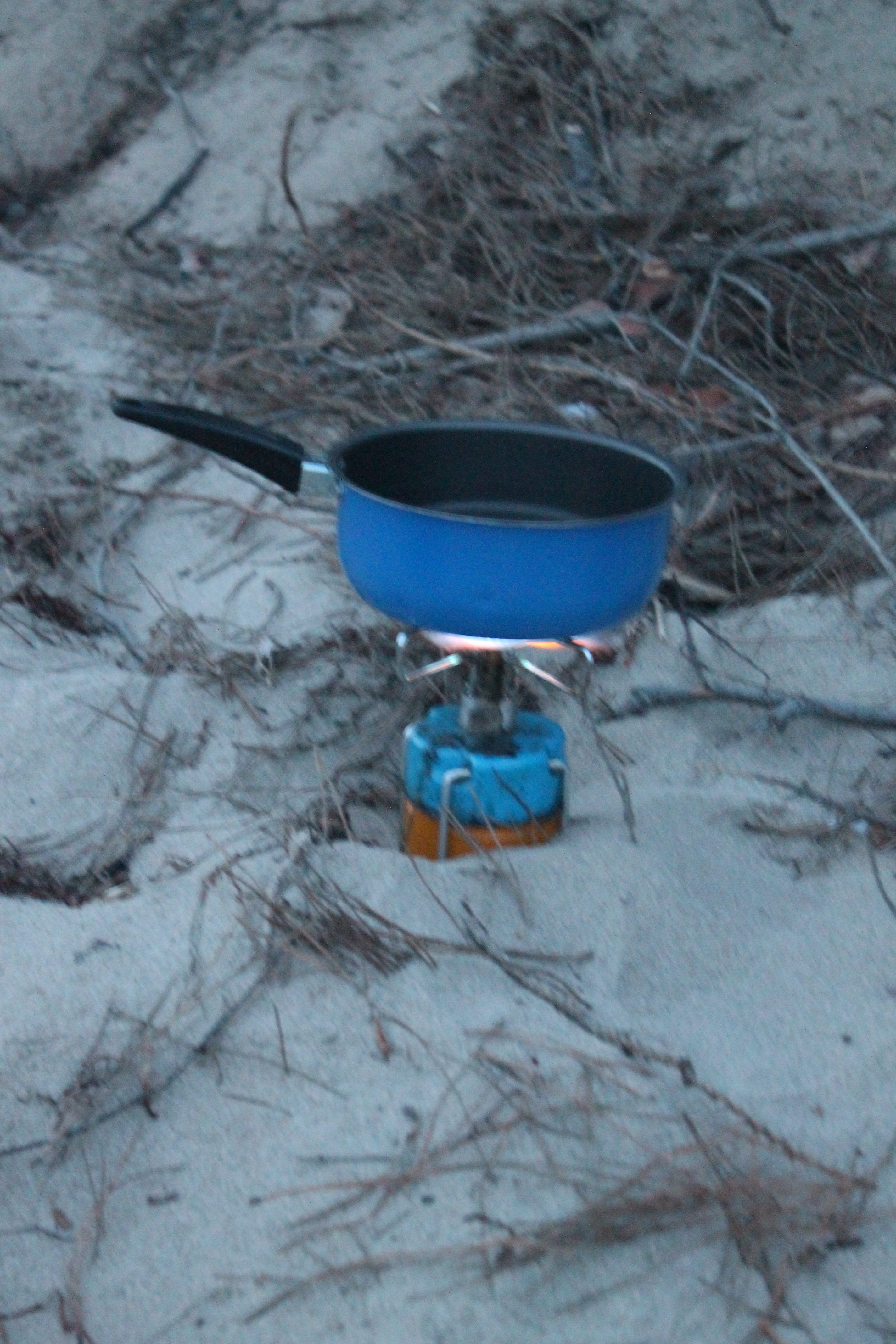 La cena è il clou della giornata. Da veri campeggiatori, con la birra infilata nella sabbia del bagnasciuga per raffreddarsi in mare e il fornellino a gas, ceniamo sulla spiaggia di fronte al camping. A pranzo la frutta era tanta, ma oltre a quella e a un sacchetto di patatine, non avevamo nient’altro. E il gelato per merenda era poca roba. Mezzo kg di pasta mangiata direttamente dal pentolino non ce lo toglie nessuno, anzi, è pure una cena romantica al chiaro di Luna.