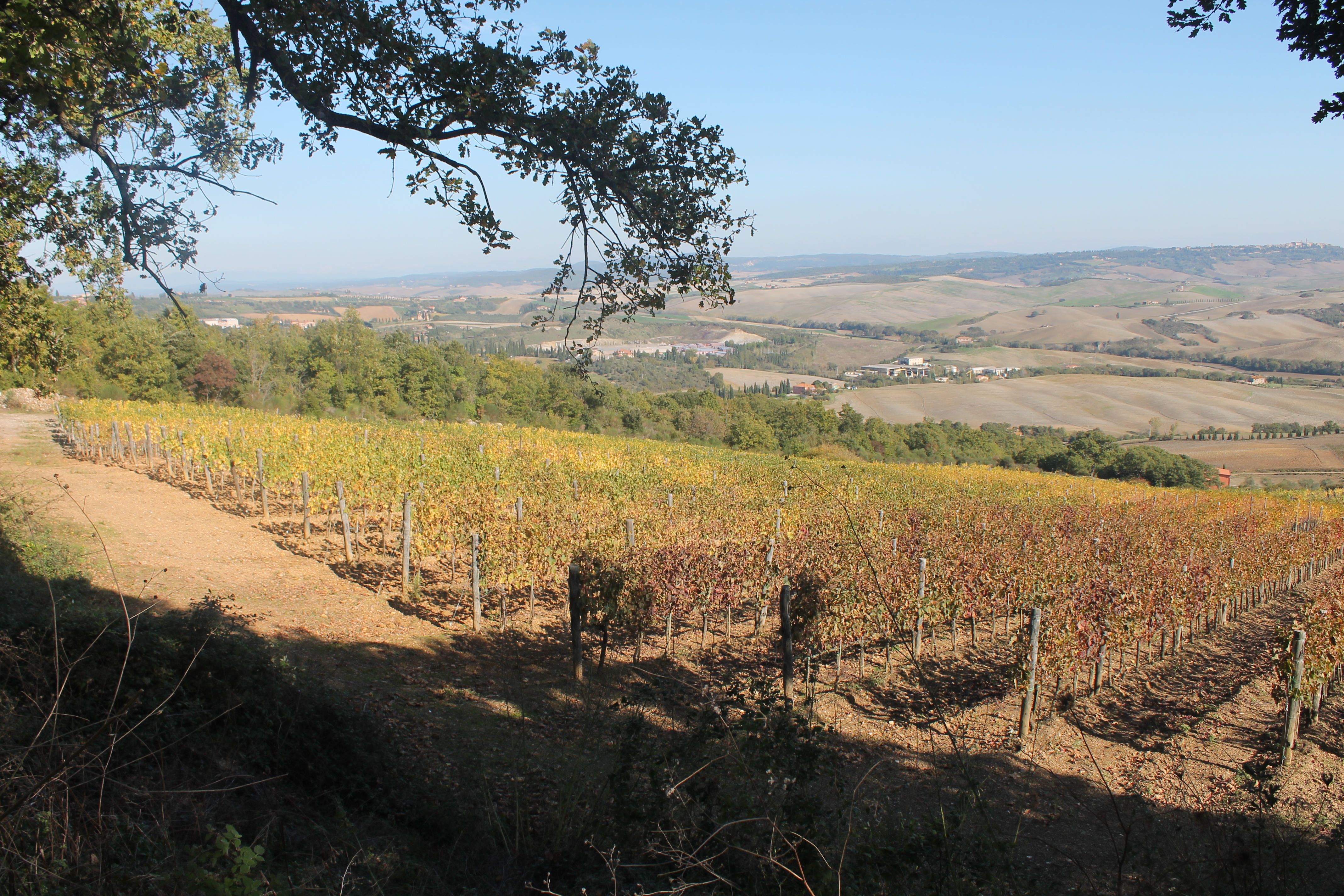 La Val d’Orcia si trova a metà strada fra il Chianti e la Maremma, e se del primo ricorda le dolci colline, della seconda riprende il sapore selvatico e incontaminato. Mi aspetto di essere lì per visitare San Quirico, invece no. Da qui passa la Francigena, e la vera sorpresa è percorrerne un tratto insieme. Così dal paese ci inoltriamo fra i campi, costeggiamo uliveti e fattorie, entriamo nel bosco. I colori di fine ottobre rendono magiche le sfumature delle colline, che sotto al cielo terso assumono ogni tonalità dal verde al marrone, passando per le più dolci gradazioni di ocra ed arancio.