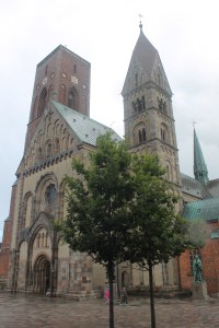 Ribe ci conquista subito. Il piccolo borgo medievale è ben conservato e ci rendiamo subito conto che è valsa la pena venire fin qua. Il cielo oggi è più variabile del solito: tutto il giorno passiamo dal sole ai temporali, con il vento che ogni tanto si alza per dare una spolverata alla città. Il monumento più importante è sicuramente la cattedrale luterana. Costruita a cavallo fra il 1100 e il 1200, ha come caratteristica le due torri campanarie, diverse fra loro. Dopo il crollo di una della due torri, quest’ultima venne ricostruita con uno stile diverso: vi si può salire in cima e godere di una splendida vista sul paese e sulle campagne circostanti fino al mare, cosa che ovviamente facciamo subito.