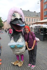 La mattina i nostri gentili ospiti ci prestano due bici per raggiungere Odense. Sono le 10 in punto quando tutti, ma proprio tutti, lasciano le proprie mansioni ed iniziano ad abbracciarsi. Dopo aver assistito alla simpatica scena, iniziamo a pedalare verso la città natale di Hans Christian Andersen, uno dei più grandi scrittori di fiabe della storia. Un colpo di fortuna ci ha fatti capitare qui proprio nell’annuale festival di Andersen: vicino alla casa-museo dello scrittore, le fiabe sono rappresentate da attori bambini, mentre per la città, vagano i personaggi più famosi, come il brutto anatroccolo. Ci imbattiamo anche in uno spettacolo di acrobati argentini, che ovviamente scelgono me, insieme a un altro Italiano, per fare qualche figuraccia pubblica.