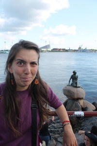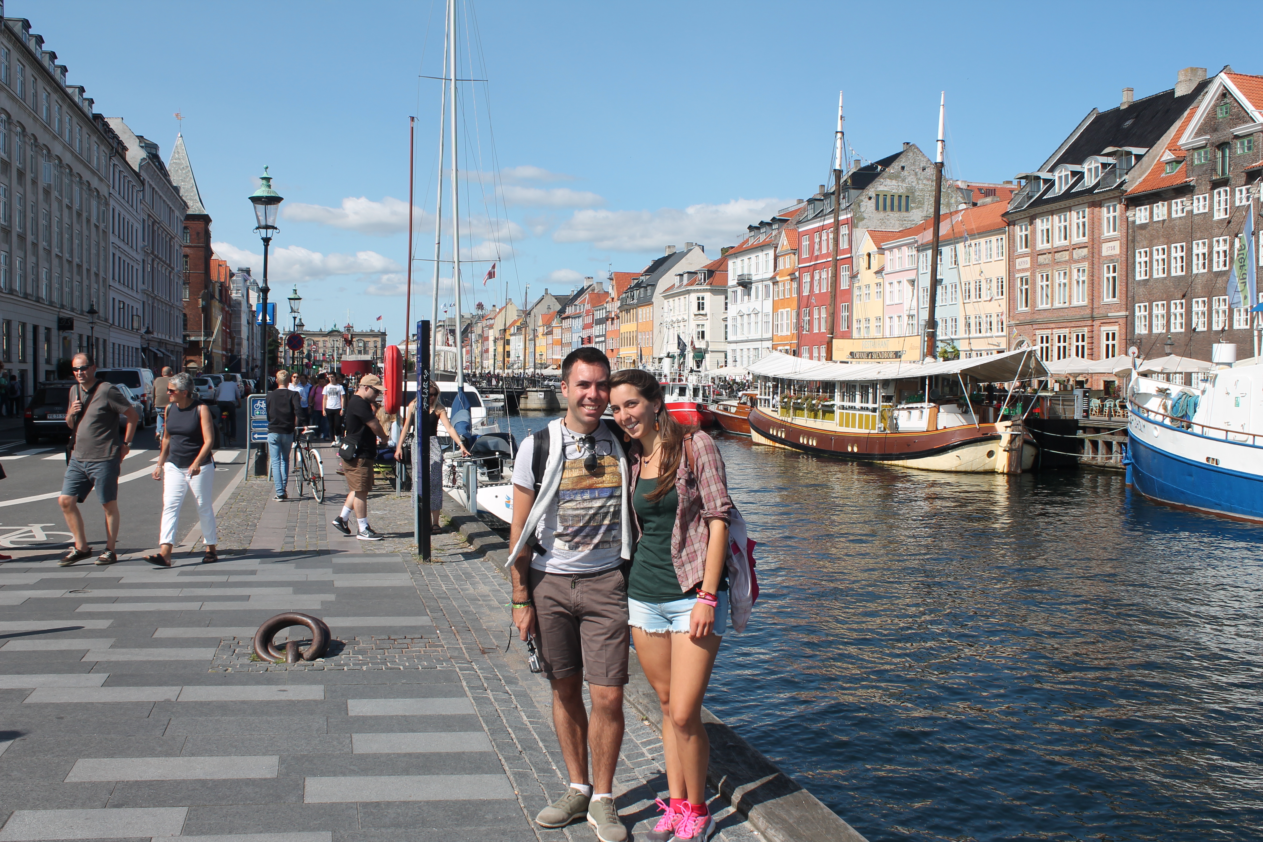 Al mattino, partiamo carichi di energia alla scoperta di Copenaghen. Ci accorgiamo ben presto di quanto sia caotica rispetto a tutte le città viste finora. Sembra di essere in un mondo a parte rispetto al resto del paese. Accanto alla stazione, vediamo solo dall’esterno i Giardini di Tivoli: il secondo parco divertimenti più antico del mondo (anche il primo è danese), attivo dal 1843. Il costo per entrarvi (e non sono comprese le giostre) è troppo alto per le nostre tasche. Una grande via dello shopping attraversa il centro storico portandoci fino a Nihavn, il canale più famoso della Danimarca, quello che fa da copertina a tutte le guide turistiche. Effettivamente è un porticciolo unico nel suo genere, che vale sicuramente qualche scatto fotografico. Litighiamo anche con due bambini, che non vogliono scendere dall’ancora con cui vogliamo fotografarci, e nonostante le nostre minacce, riescono ad entrare nella foto.
